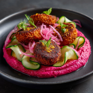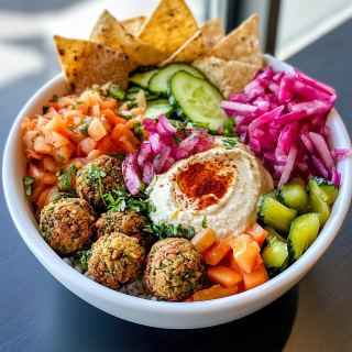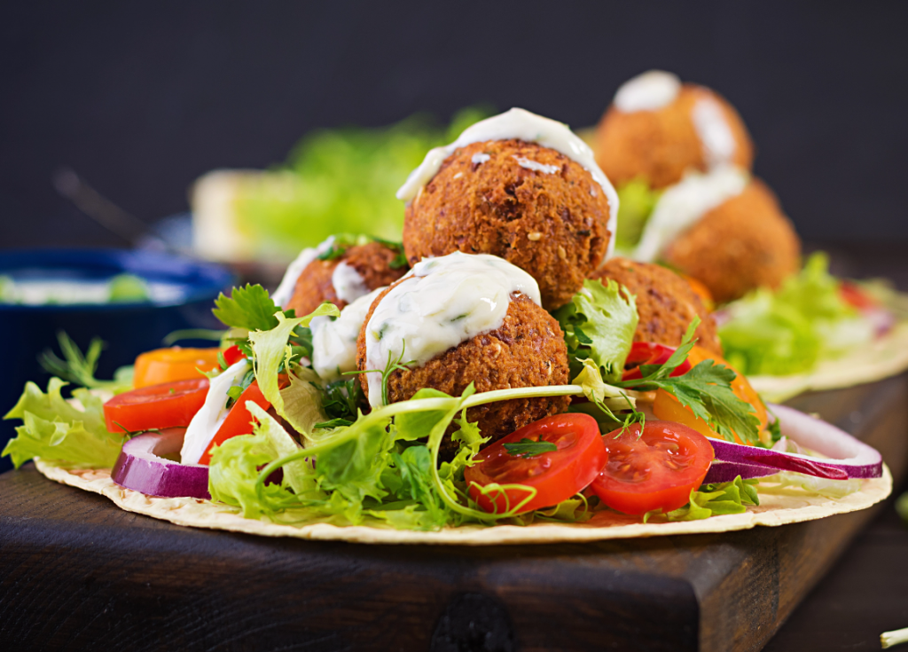 Crispy falafel, tahini sauce, garden-fresh vegetables.