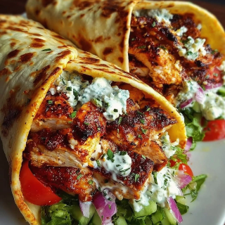 Spiced beef wrapped warm with fresh Mediterranean fixings.